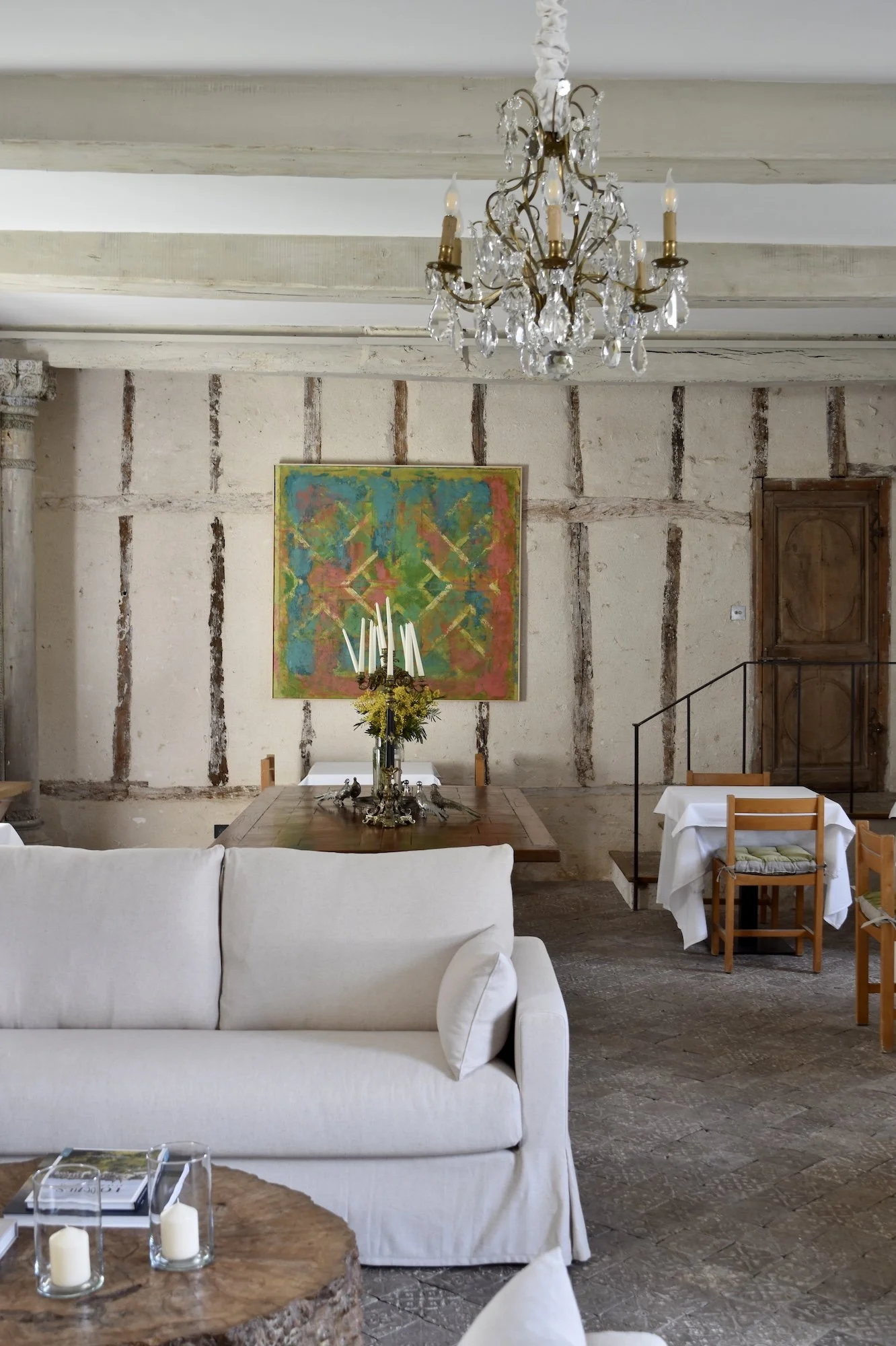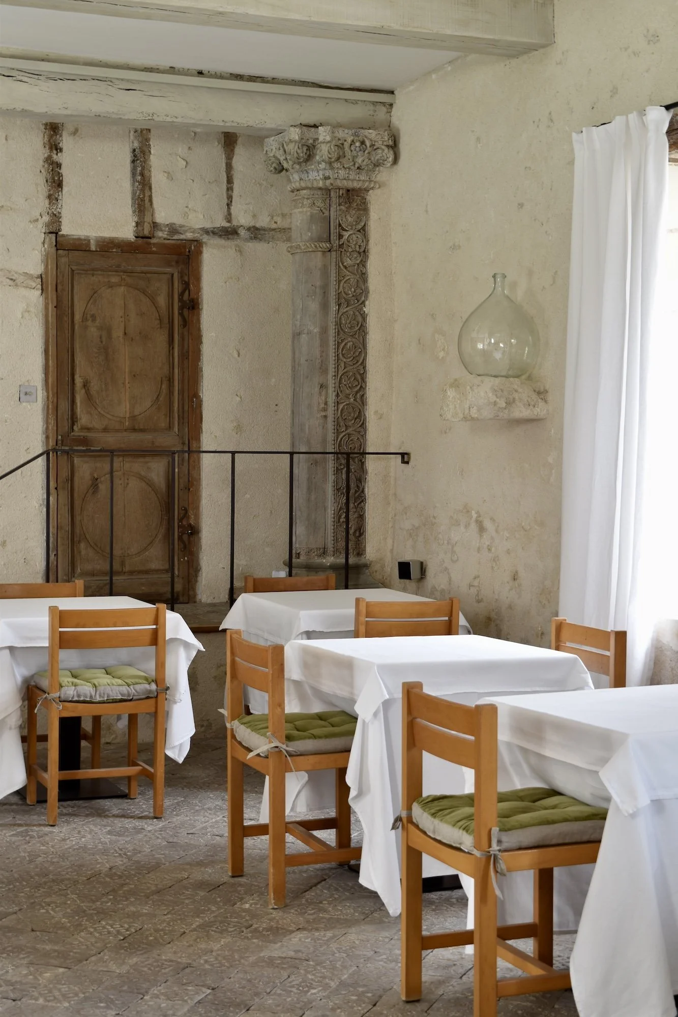 L’ancien pressoir du château accueille aujourd’hui les hôtes dans un espace authentique et convivial. Il conserve son pressoir en pierre d’origine, ainsi que des piliers sculptés et des carreaux taillés à la main.