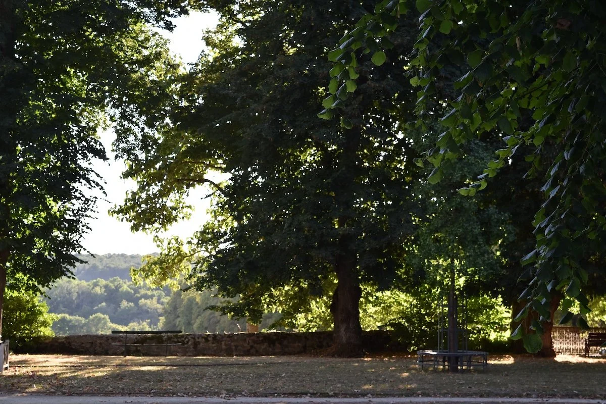 Upon its hill the château has its own walled English style park with neatly cut lawns, winding gravel paths and centennial trees.