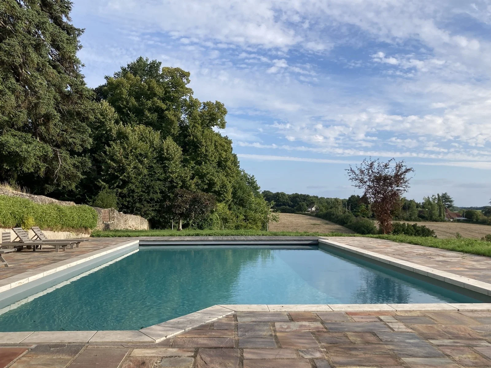 Tucked into the landscape just beside the château the saltwater swimming pool is a peaceful sun trap with glorious views.