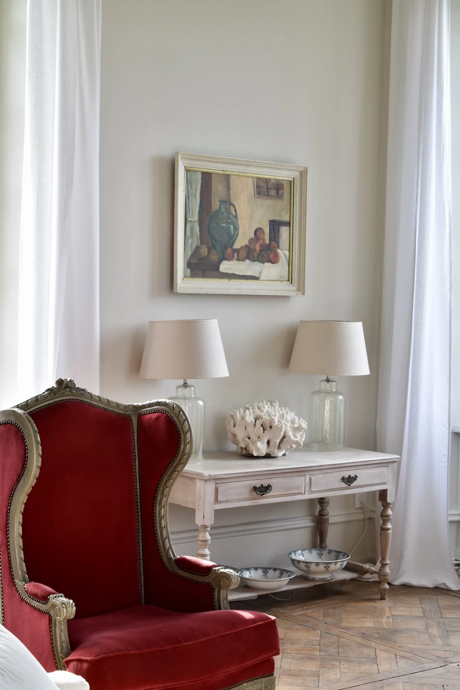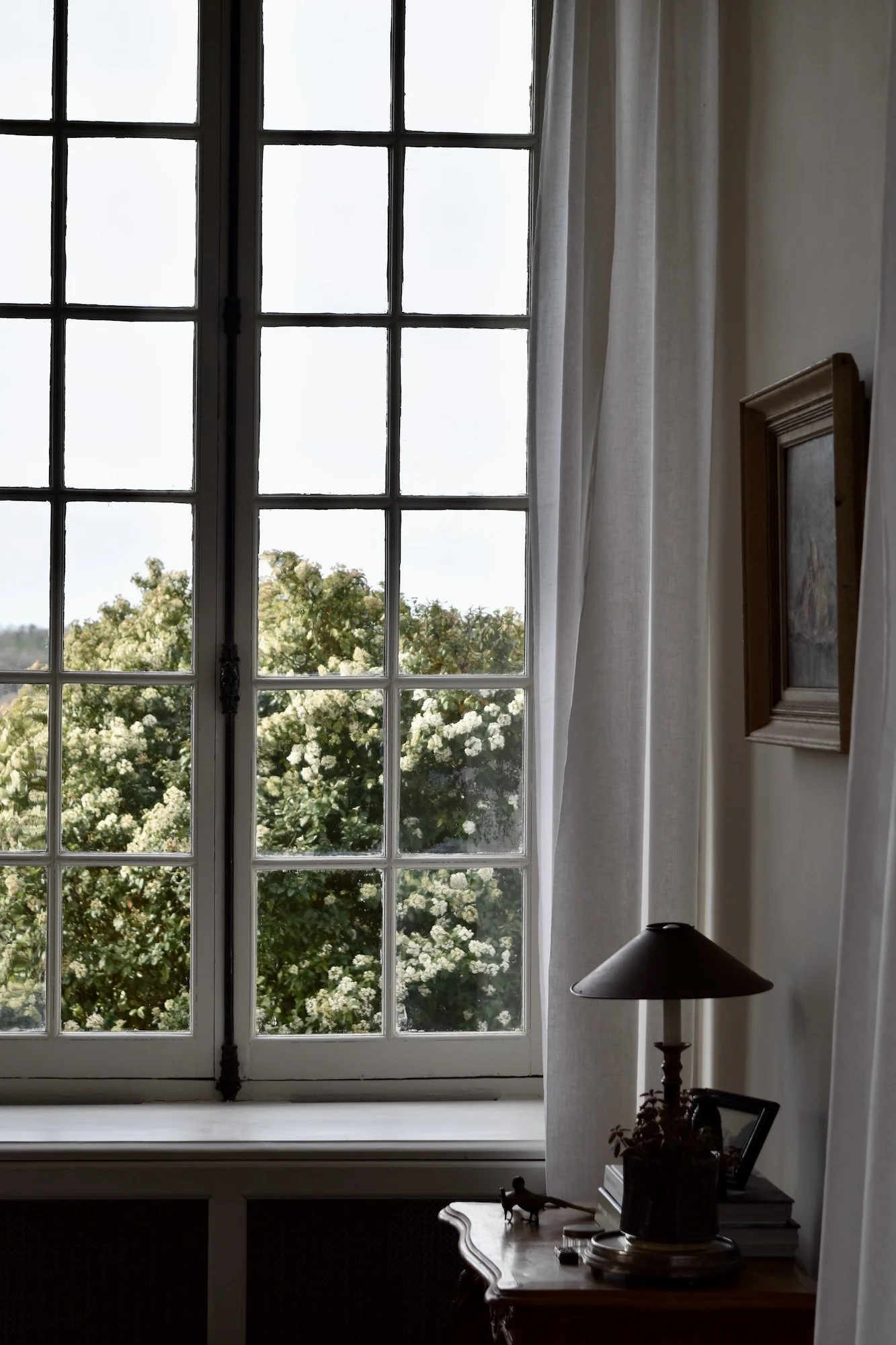 A large and calming space, the Grand Salon benefits from four tall windows and open views across the valley.