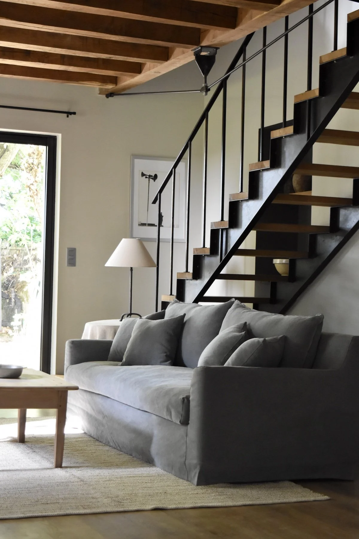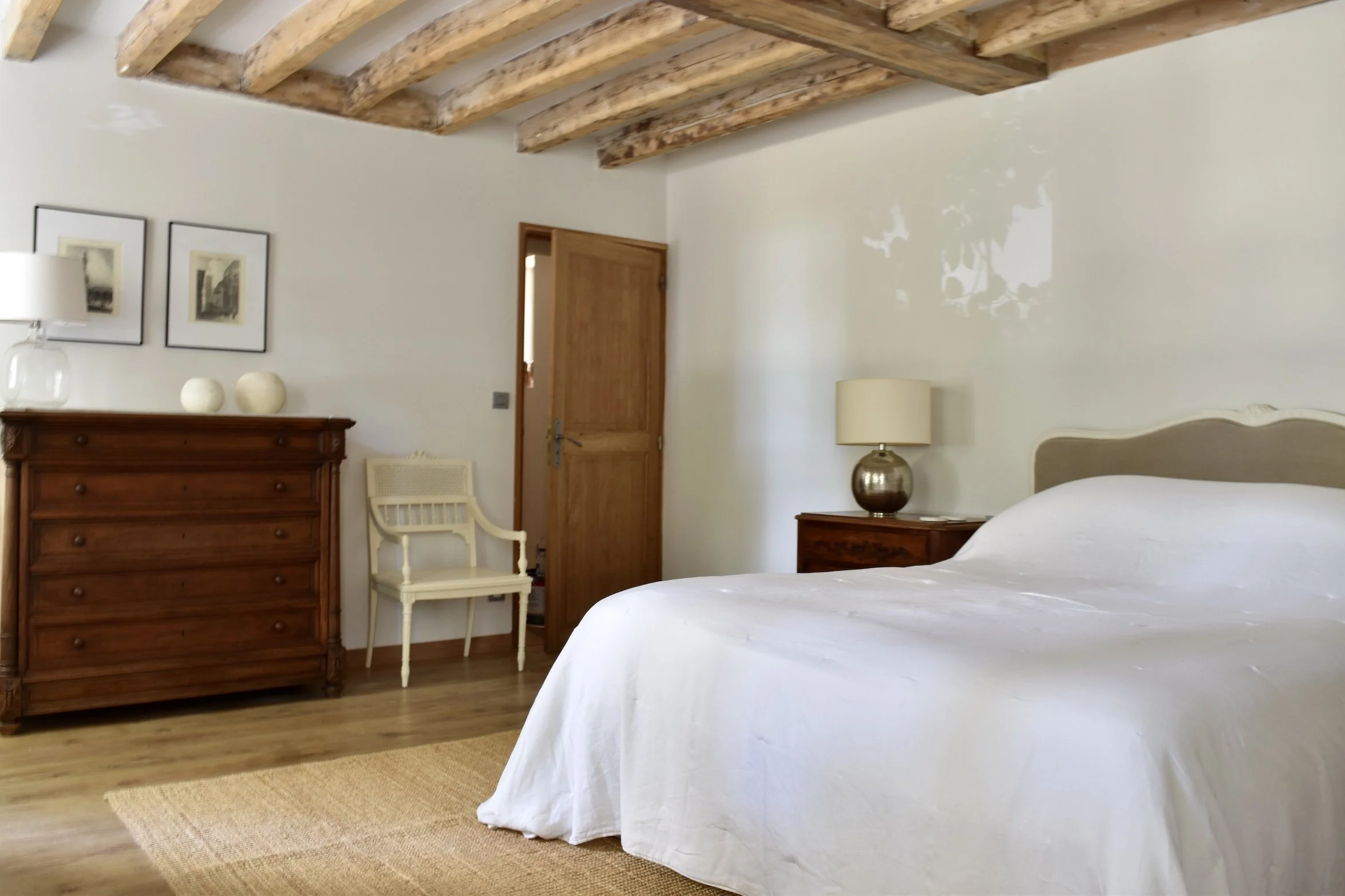 Au rez-de-chaussée, la chambre principale est particulièrement spacieuse avec ses poutres apparentes en chêne. La deuxième chambre se trouvant à l’étage chambre, est plus petite mais parfaitement agencée. Les deux chambres sont équipées de lits king-size avec des matelas à ressorts ensachés en garnissage naturel.