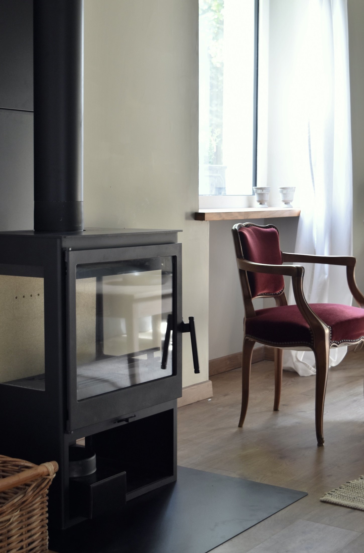 Salon spacieux avec poêle à bois